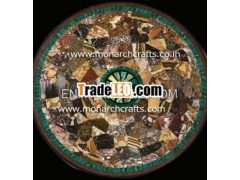 Enhance any outdoor dining table or coffee table with thisbeautifully inlaid roman mosaic table in marble & other naturalstones. A wide variety of sizes & shapes are available to fityour outdoor and indoor needs.